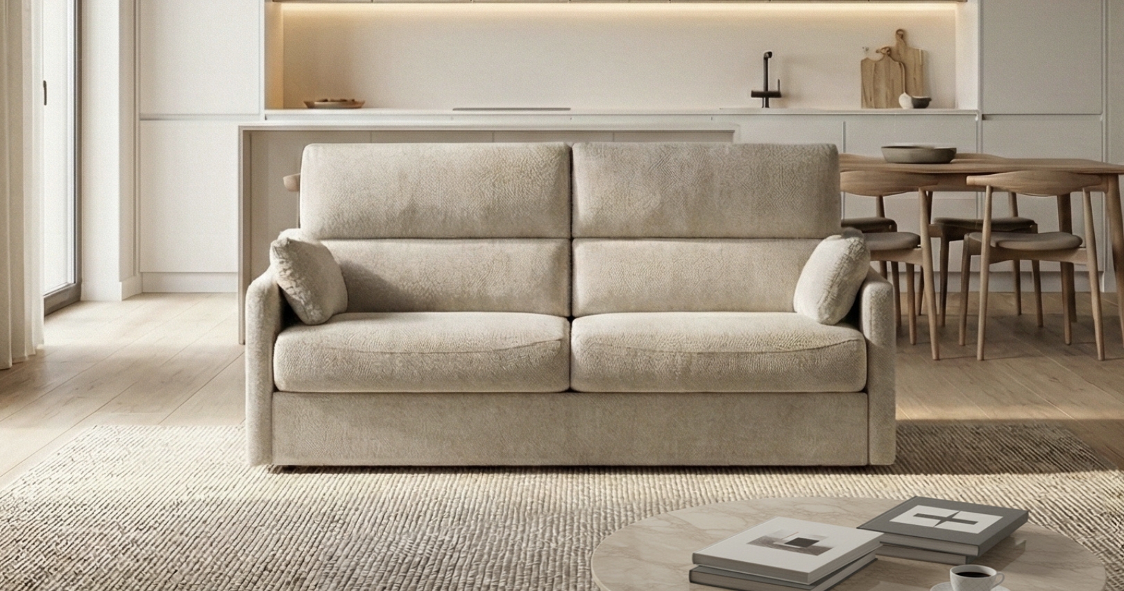 CELINE est un canapé convertible au design moderne, disponible en tissu. Son dossier haut de 107 cm offre un excellent maintien, tandis que son mécanisme Fast’Bed® Rapido permet une ouverture rapide et sans effort. Équipé d’un matelas de 18 cm, il garantit un véritable couchage quotidien. Fabrication italienne.