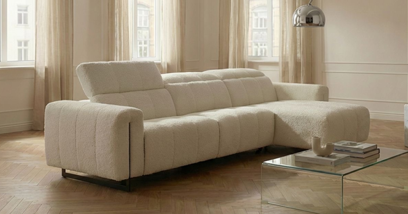 CAPRI, avec son design contemporain et ses lignes élégantes, ce modèle d’angle avec méridienne s’adapte facilement à tous les intérieurs. Disponible en tissu, il offre plusieurs configurations pour répondre à vos besoins : une version fixe au style épuré ou, en option, des relaxations électriques pour un confort personnalisé. Ses têtières ajustables permettent de trouver la position idéale selon vos envies, que ce soit pour vous relaxer, lire ou profiter d’un moment convivial. Son assise généreuse et enveloppante procure une sensation de bien-être immédiate, idéale pour prolonger les instants de détente. Côté design, CAPRI se distingue par ses pieds en métal qui se prolongent avec élégance sur les accoudoirs, apportant une touche moderne et originale. Proposés en plusieurs finitions, ils vous permettent de personnaliser votre canapé selon votre style.