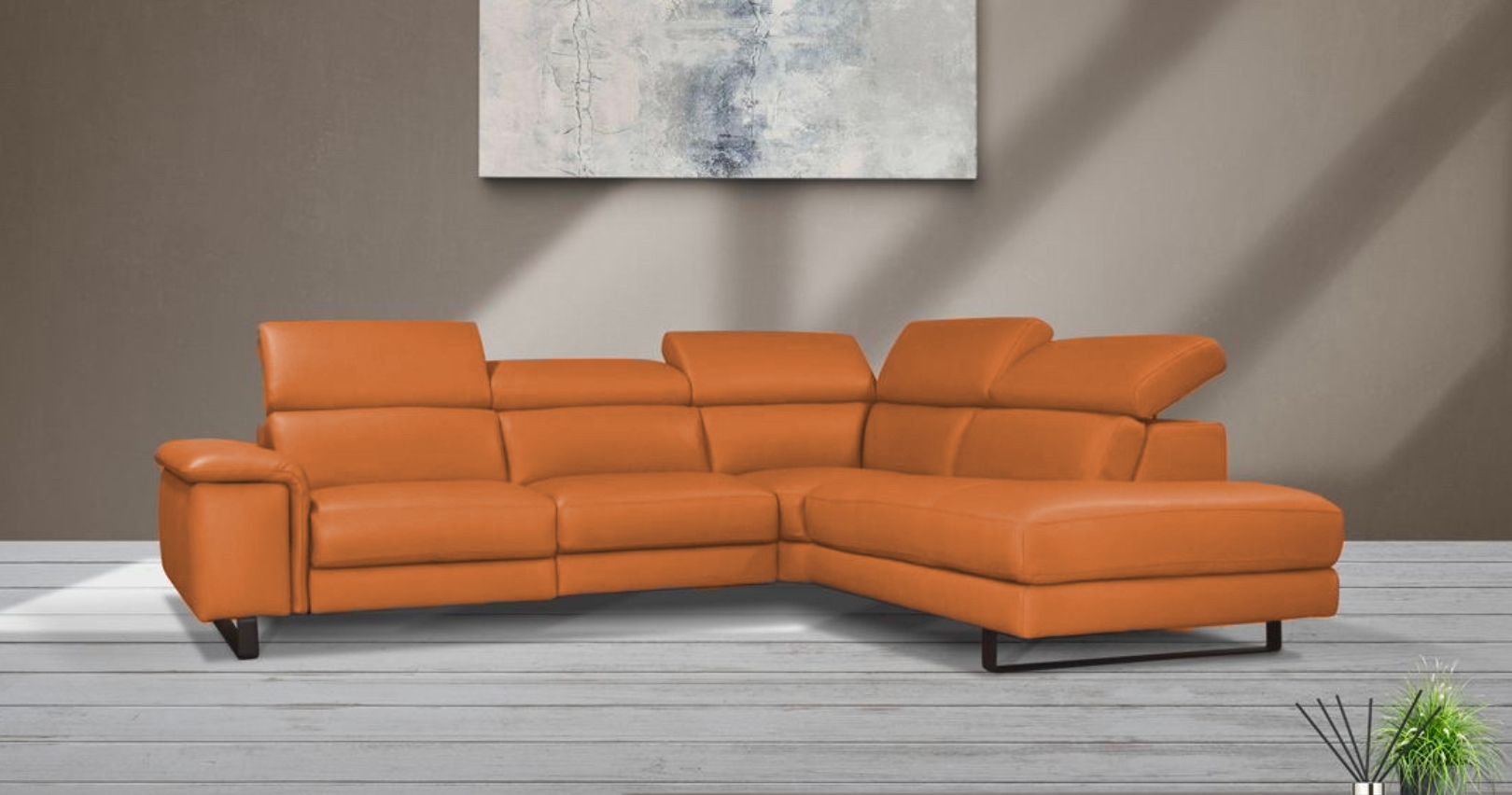 MEXIQUE, est un canapé d’angle contemporain proposé en version fixe ou avec relaxation électrique en option. Son design épuré, sublimé par une base surélevée, lui apporte une grande légèreté visuelle tout en offrant un confort d’assise remarquable. Ses têtières relevables et réglables assurent un excellent maintien de la tête et de la nuque, pour un soutien parfaitement adapté à vos besoins. Entièrement revêtu de cuir Vachette Supérieur (1,6 à 1,8 mm) ou de cuir Vachette Épais (2,0 à 2,2 mm), il séduit par la qualité de ses matériaux et sa finition haut de gamme. La relaxation électrique se commande facilement grâce à deux boutons discrets et intuitifs.