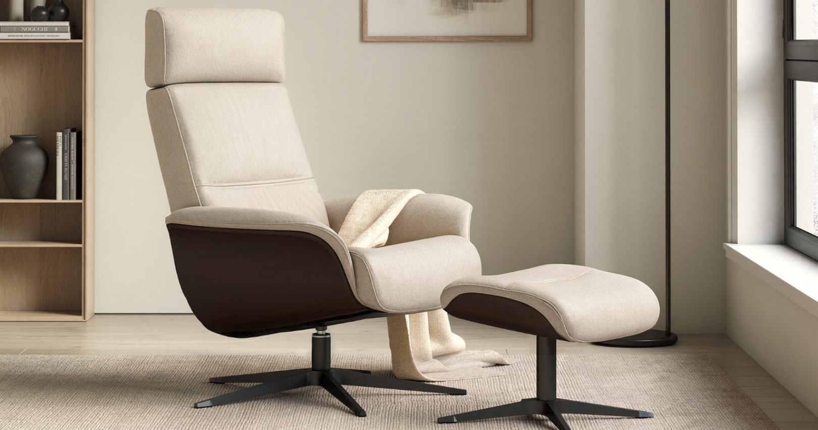 “OSLO” est un fauteuil pensé pour offrir une détente personnalisée, parfaitement adaptée à vos envies. Grâce à son repose-pieds indépendant et ergonomique, inclinable pour un meilleur soutien des jambes, il s’ajuste facilement à votre manière de vous relaxer. Ses accoudoirs élégants finition bois, son appuie-tête réglable et son dossier ergonomique témoignent d’une conception soignée et confortable. L’angle du dossier se règle en douceur grâce à un système d’inclinaison élévateur, tandis que le pivotement fluide à 360° vous permet de vous orienter librement sans effort. OSLO offre ainsi une assise idéale, que ce soit pour lire, se reposer ou regarder la télévision.