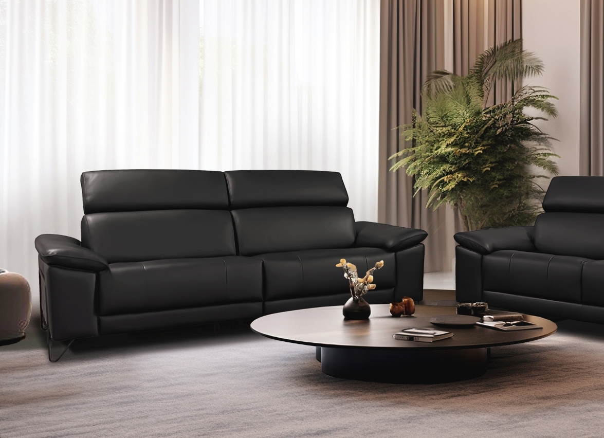 OZIRIS est un canapé contemporain, disponible en version fixe ou avec relaxation électrique. Son piètement en acier remontant sur les accoudoirs lui confère une signature design originale, avec finitions au choix à l’étape 4. Ses têtières relevables et réglables, avec option électrique sur les versions relax, garantissent un confort personnalisé. Entièrement habillé de cuir Vachette Premium ou Excellium, OZIRIS se commande facilement grâce à ses commandes tactiles.