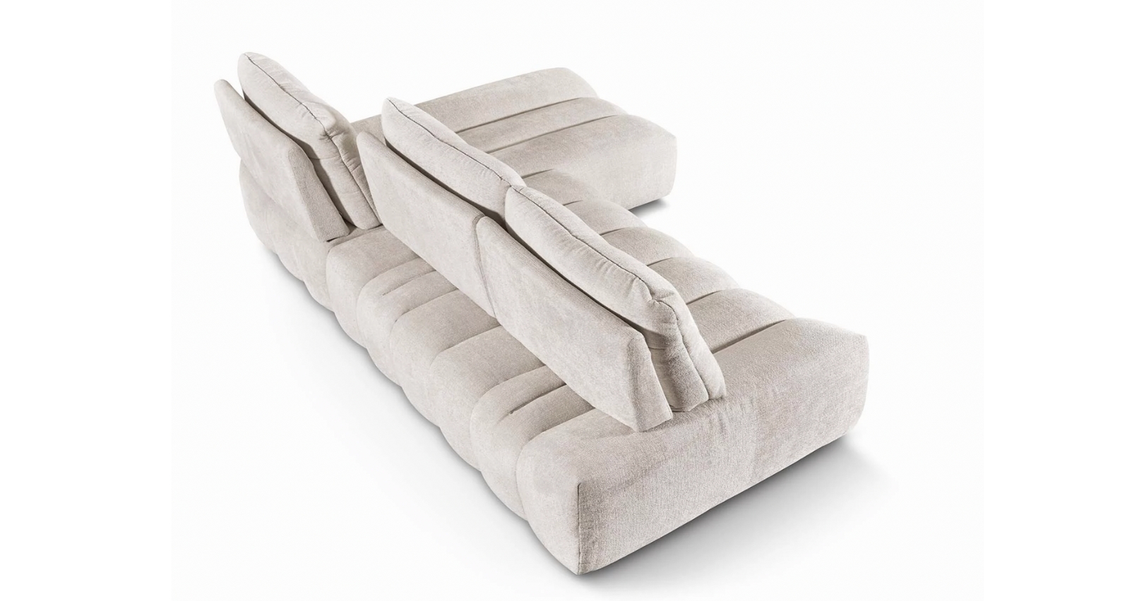 RIVA : Avec son assise capitonnée aux formes arrondies et ses dossiers avance-recule, le canapé RIVA avec méridienne allie design contemporain et confort absolu. Sa silhouette basse et sans accoudoirs lui confère une allure moderne, tandis que son tissu texturé doux au toucher invite à la détente. La méridienne prolonge l’espace de repos pour un confort enveloppant, idéal dans un intérieur design, minimaliste ou chaleureux.