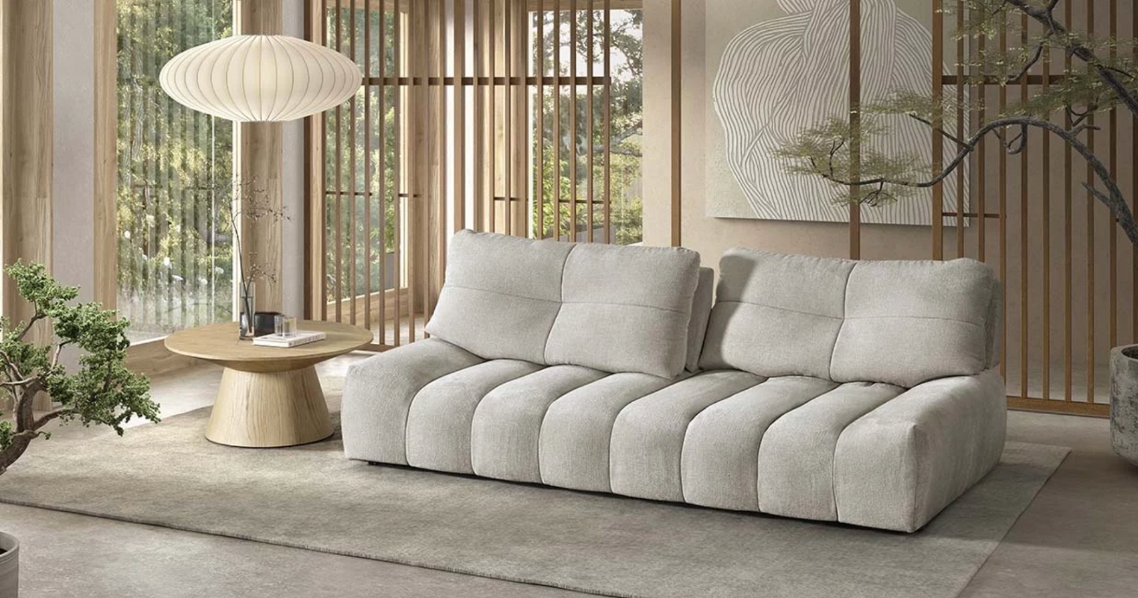 RIVA : Avec son assise capitonnée aux formes arrondies et ses dossiers généreusement rembourrés dotés d’un système avance-recule, le canapé RIVA offre un parfait équilibre entre design contemporain et confort absolu. Sa silhouette basse, fluide et dépourvue d’accoudoirs lui confère une allure résolument moderne. Habillé d’un tissu texturé doux au toucher, RIVA invite naturellement à la détente grâce à ses lignes enveloppantes et son ergonomie soignée. Il s’intègre avec élégance dans un salon design, un espace de vie minimaliste ou un intérieur chaleureux en quête de caractère. Un véritable cocon de confort au style affirmé, pensé pour sublimer chaque moment de repos.